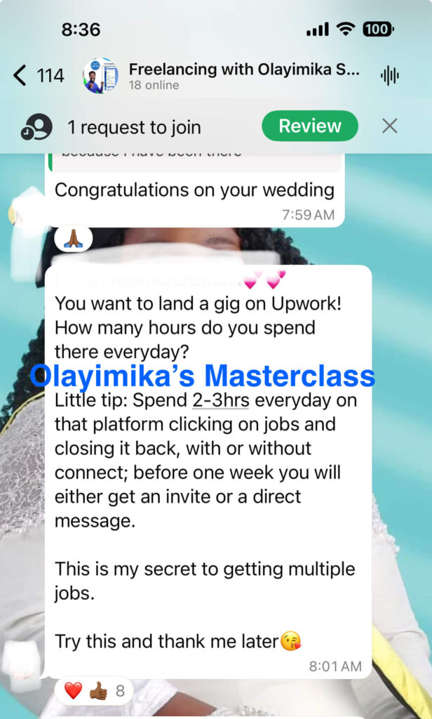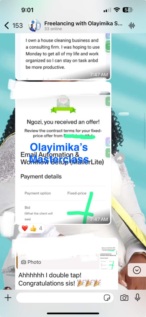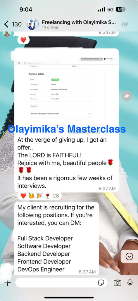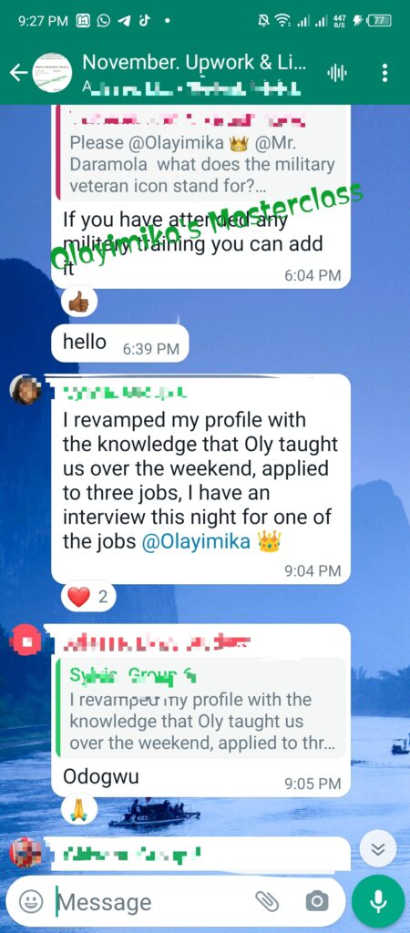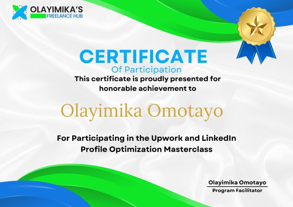 Hi, I’m Olayimika Omotayo, a Top-Rated Upwork freelancer and coach with a track record of winning jobs on Upwork and LinkedIn. I’ll be your coach for this training, and I’m the best at what I do.